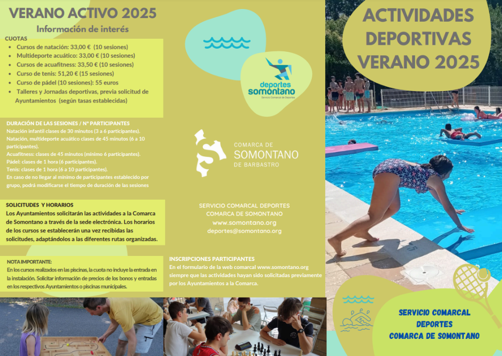 La Comarca de Somontano, en colaboración con los Ayuntamientos, ofrece una amplia oferta de actividades organizadas por el Servicio Comarcal de Deportes durante los meses de julio y agosto.